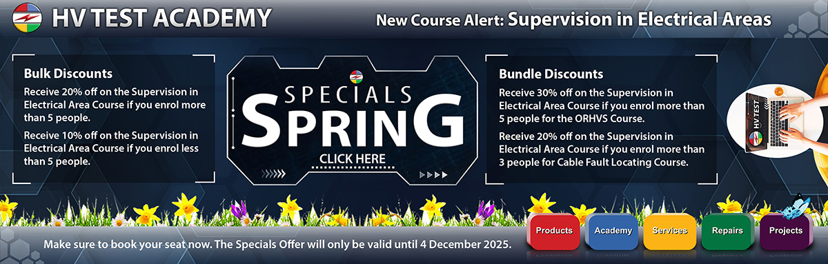 Our focus is to ensure safety in the field, which is always a priority and our course material addresses this. We believe firmly in the transfer of knowledge to uplift the workforce’s skills and increase work quality and safety in the market. This is the reason why H.V. Test Academy (Pty) Ltd has extended its training portfolio to offer Health and Safety Courses pertinent to the electrical industry. Specialised courses and workshops are offered on client’s request. Our Training personnel will be happy to assist with your theoretical and practical training requirements.